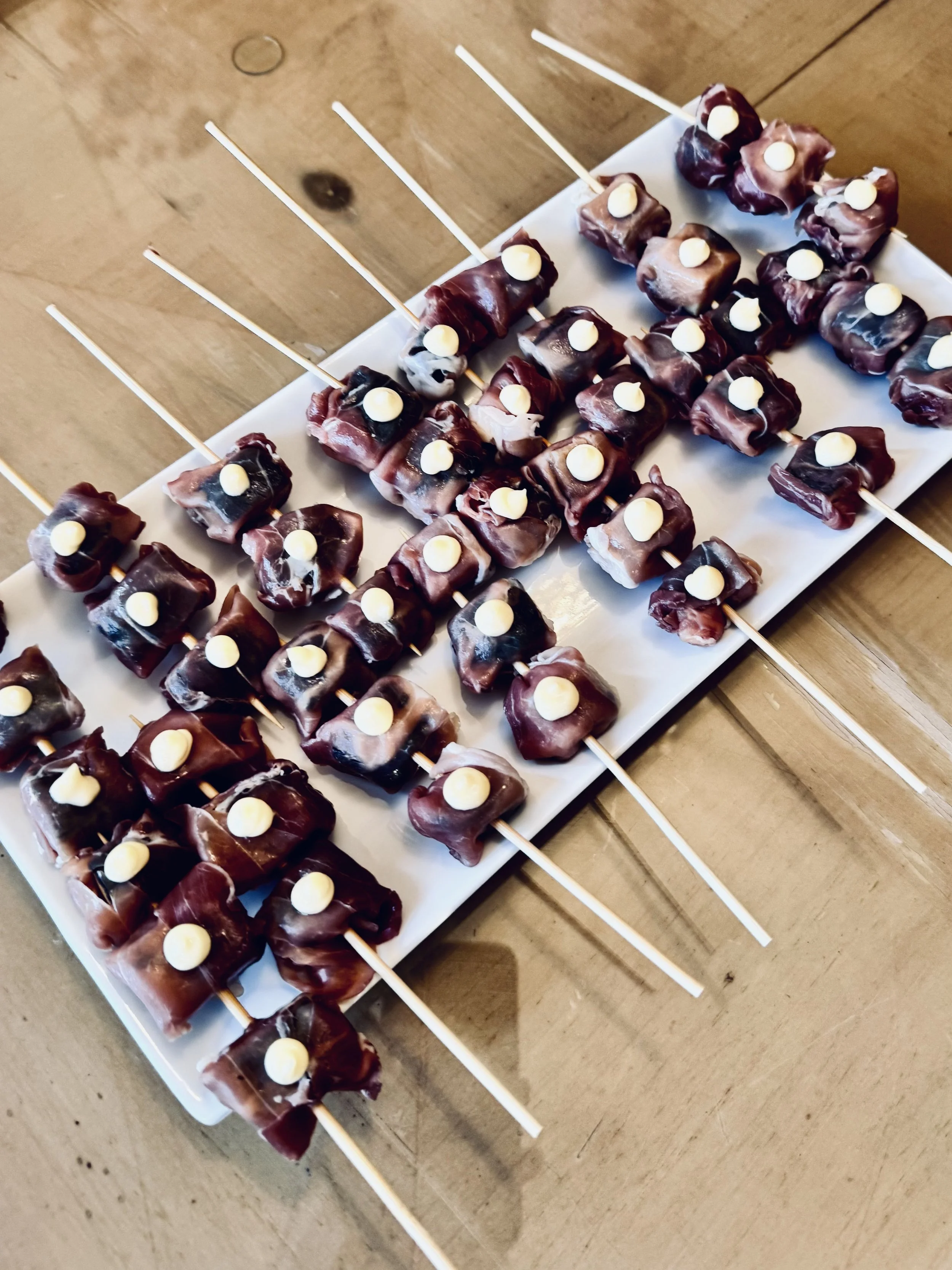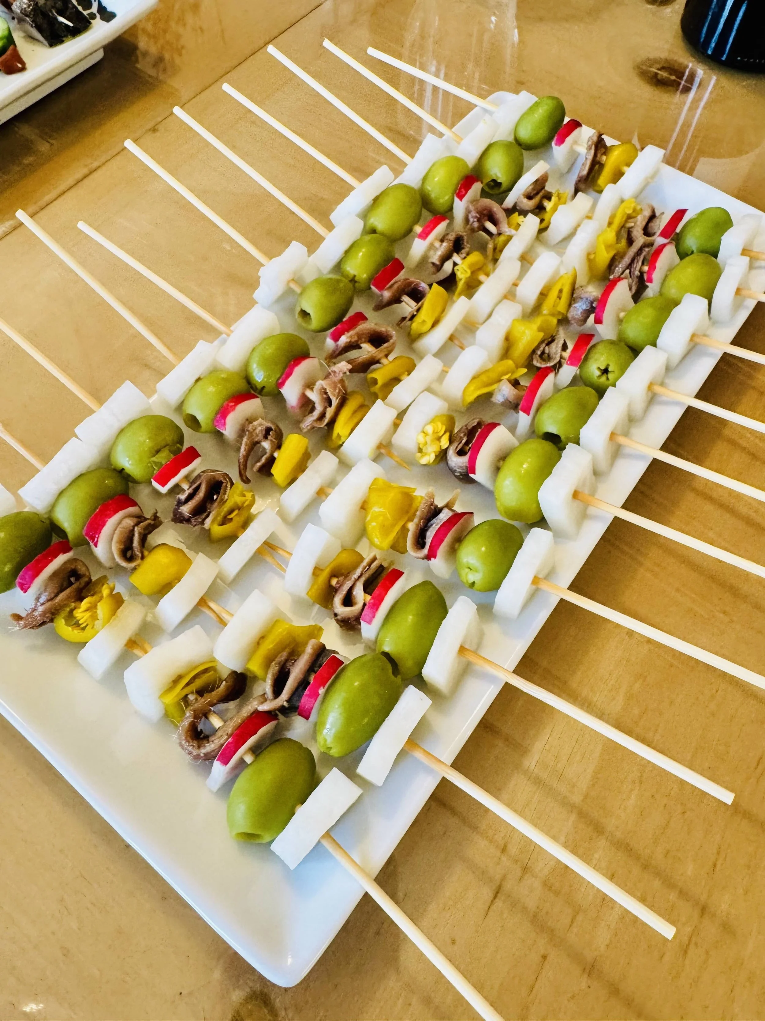 Pintxos 1 - 무 피클, 고추 피클, 앤초비, 붉은 순무, 올리브