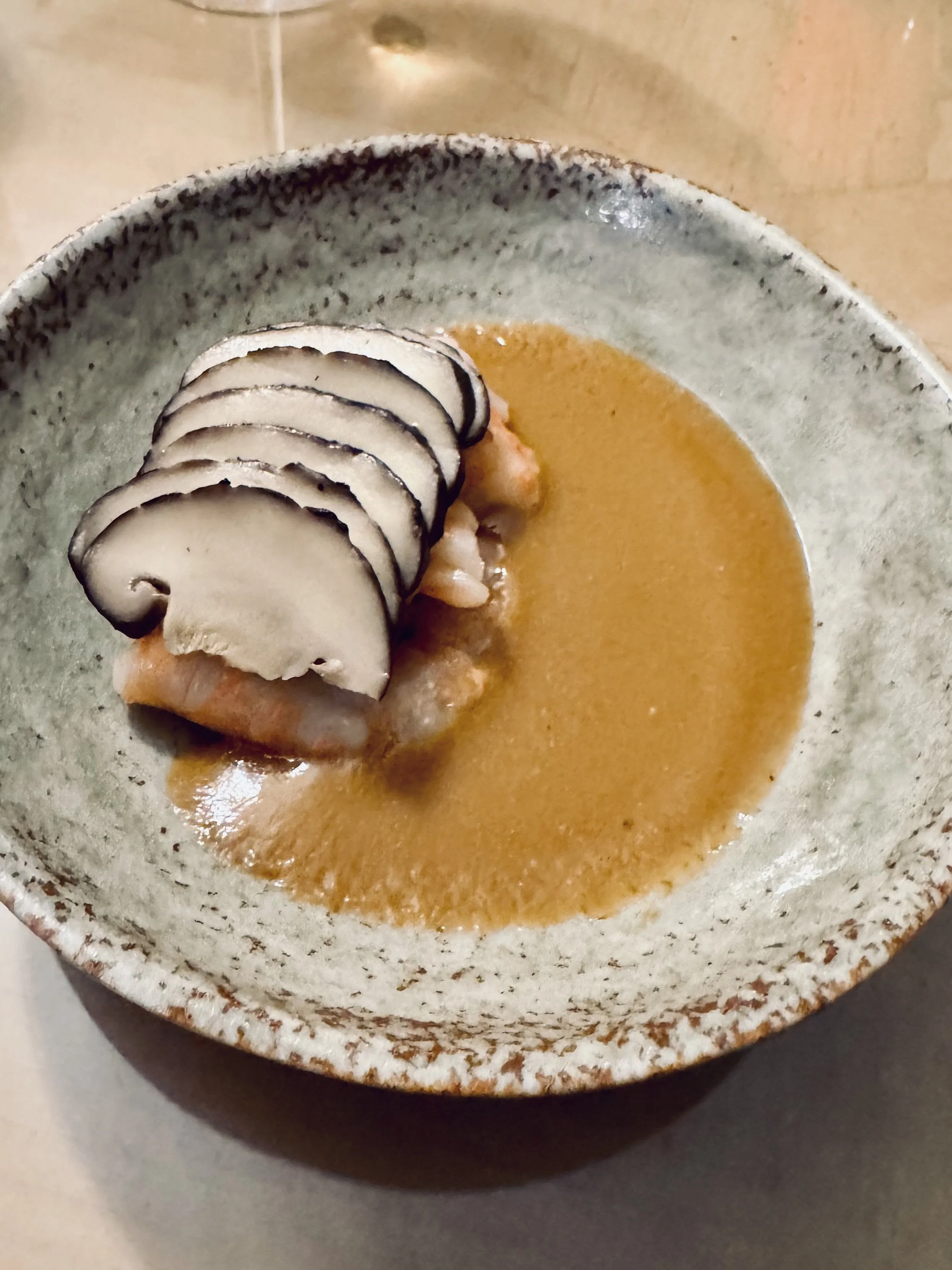 새우비스크는 진한 새우의 향으로 후각 부터 사로잡고 쫄깃한 식감의 버섯과 함께 더욱 조화롭게 느껴졌습니다.