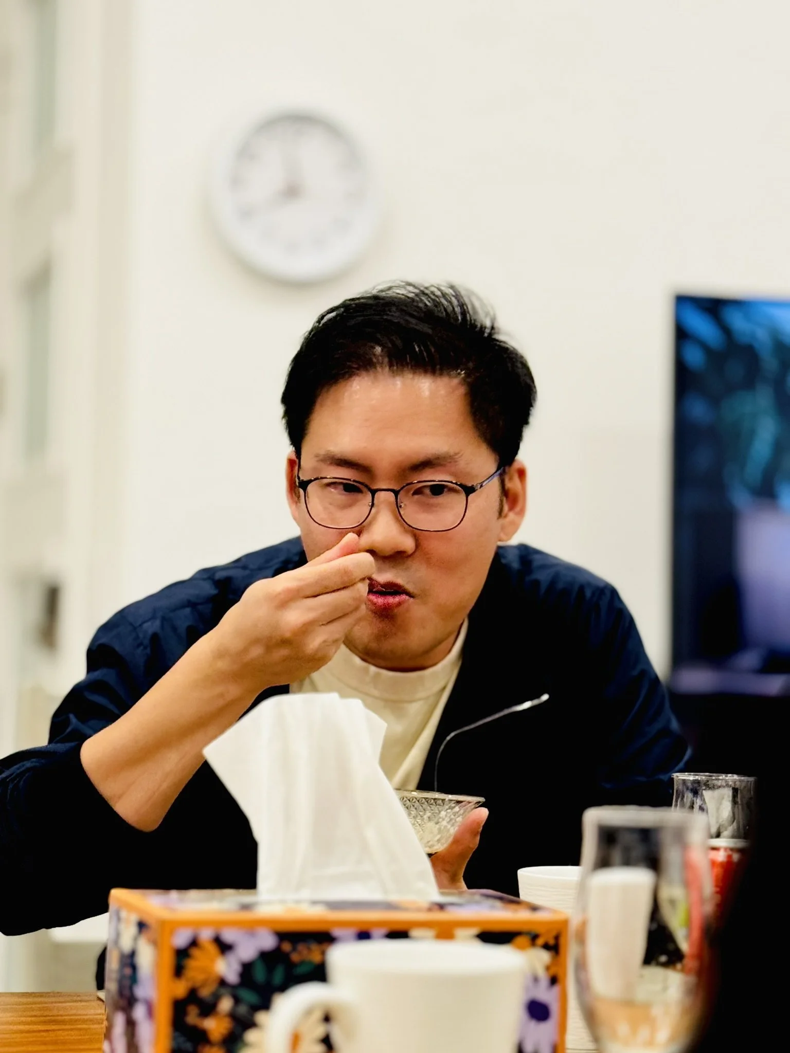 박예나: 이번에 처음으로 “작은 식탁 큰 이야기” 모임에 참여했는데, 생각했던 것보다 훨씬 좋은 경험이었습니다. 레스토랑이 아닌 집이라는 공간에서 요리를 맛보고 사람들과 이야기를 나누니 한층 더 편안한 분위기가 느껴졌습니다. 참석하신 분들과는 대부분 처음 뵙는 사이였지만, 맛있는 음식을 함께 즐기고 술도 한 잔씩 나누다 보니 금세 자연스럽게 분위기에 녹아들었던 것 같습니다. 사실 처음에는 조금 어색했지만, 다른 분들이 대화를 잘 이끌어주셔서 부담 없이 편하게 즐길 수 있었습니다. 요리도 정말 훌륭했습니다. 제 첫 오마카세였는데, 오래 기억에 남을 멋진 경험이 된 것 같아요. 각 음식마다 설명도 친절하게 해주셔서 더욱 재미있게 즐길 수 있었습니다. 이 모임을 조금 더 일찍 알았더라면 좋았겠다는 생각이 들 정도로 즐겁고 뜻깊은 시간이었습니다. 모임을 준비해주신 Shawn님과 쉐프님께 감사드립니다. 캘리포니아의 비 오던 날의 좋은 추억으로 오래 기억될 것 같습니다.